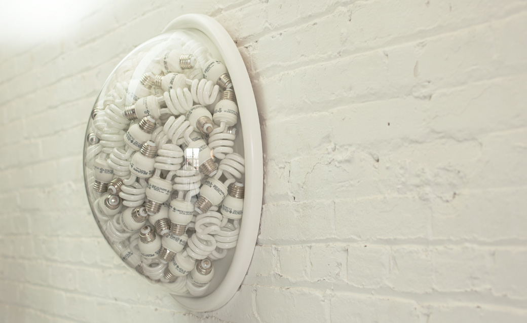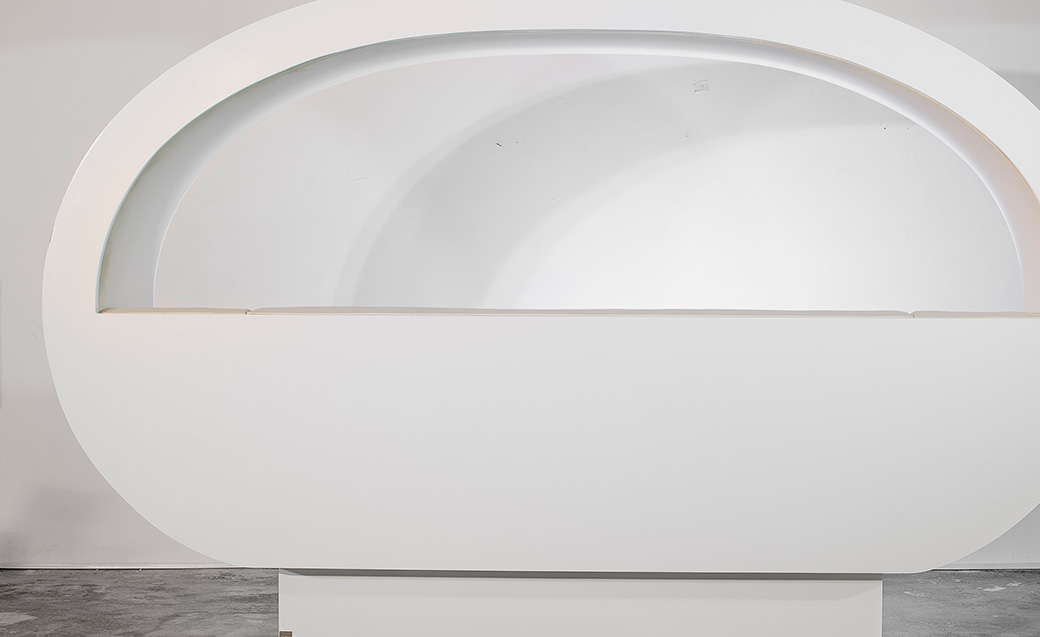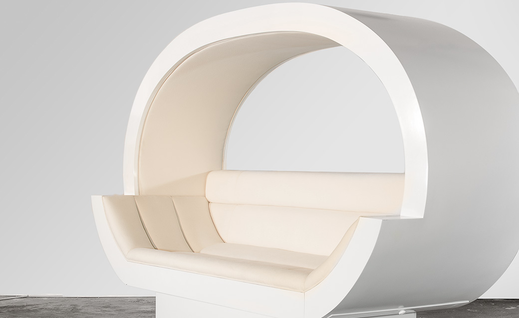 Gibbous is a glow-in-the-dark easy chair and ottoman. One quarter of the sphere pulls